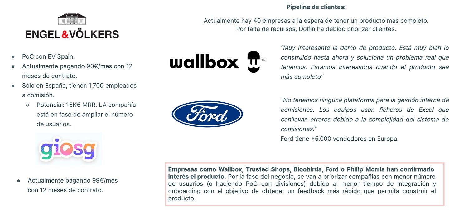 Tienen un pipeline de 40 clientes esperando para usar el producto, entre ellos Wallbox, Ford 5000 vendedores) y Philip Morris International.