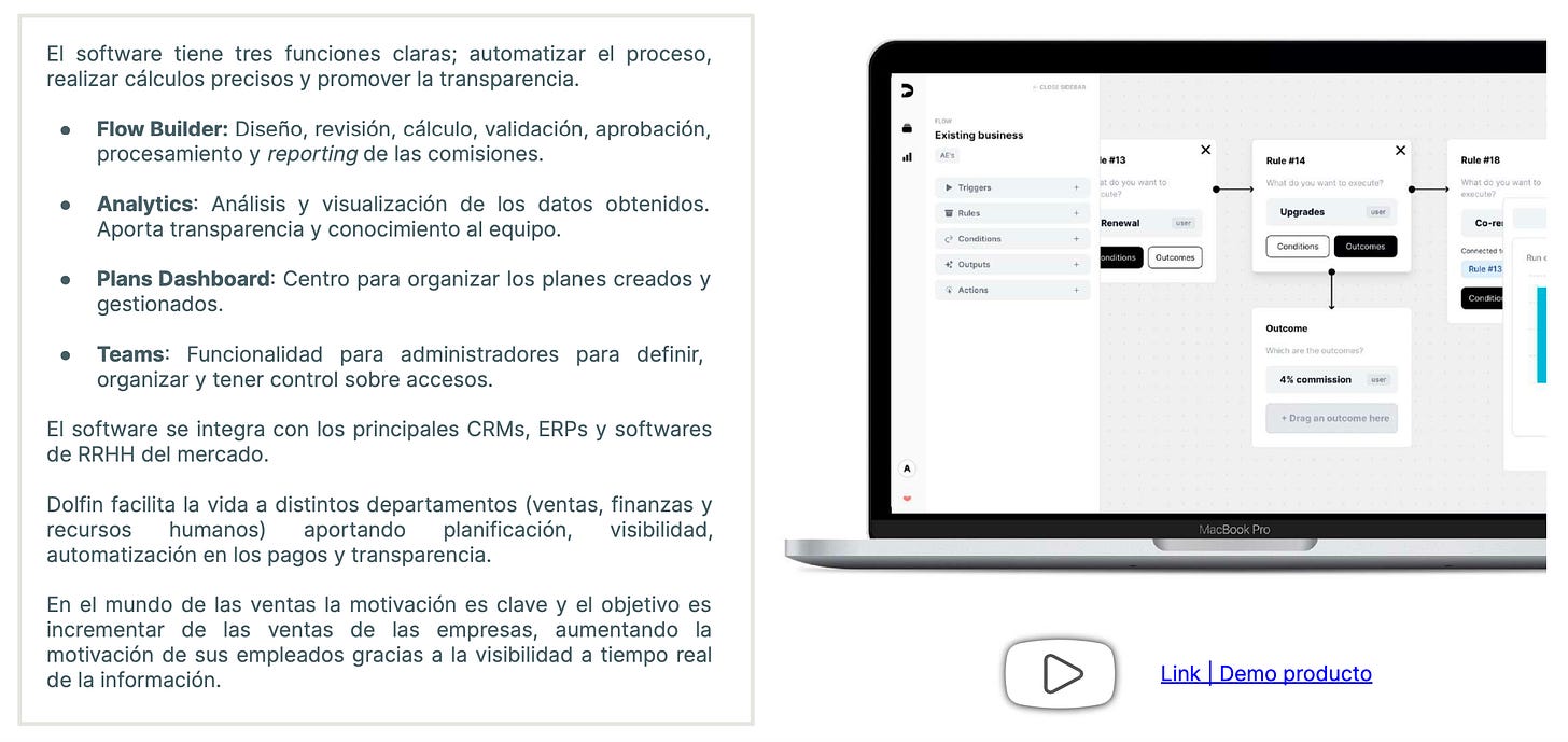 Dolfin es un software (SaaS B2B) que ayuda a las empresas a gestionar y automatizar los planes de comisiones de los empleados.