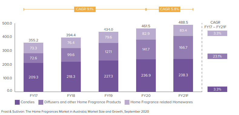 Posee un 22% de la cuota de mercado em artículos de fragancias para el hogar en Australia.