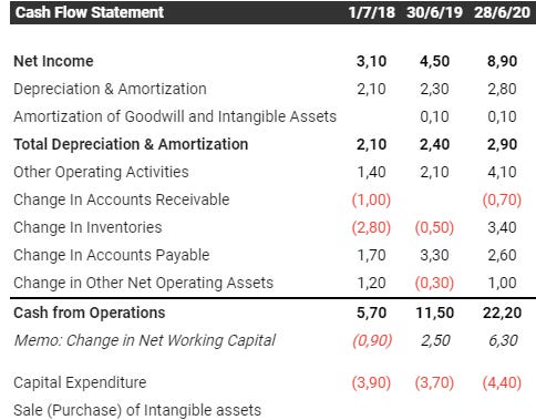 Negocio con Working Capital negativo que le permite crecer orgánicamente con la nueva apertura de tiendas físicas. Se destinan unos 4M$ anuales de capex (desde 2018 hasta 2020 han abierto 10,11 y 9 tiendas respectivamente). La conversión de EBITDA a FCF es muy buena.