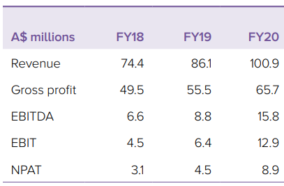 Los ingresos han ido aumentando de forma anualizada a ritmos superiores al 15%, los cuales están bastante diversificados por tipo de producto. Con unos márgenes brutos muy buenos (65% aprox.) a pesar que la depreciación del dólar australiano no les ha permitido mejorarlos. El margen operativo ha ido mejorando con el tiempo gracias al incremento de ventas.